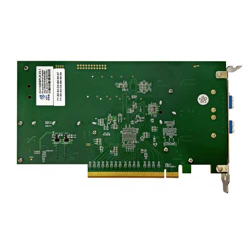 光润通生产的的单路双端口光纤 100G Bypass 以太网旁路服务器适配器 F1102EBPLR-V3.1 是 PCI-Express X16 网络接口卡,在 PCI-E 适配器上包含两个光纤(LR)100G 以太网端口(内含两个 100G 单模 10KM 光模块)。此适配器面向内联网络系统,可在系统出现故障时维护网络连接。